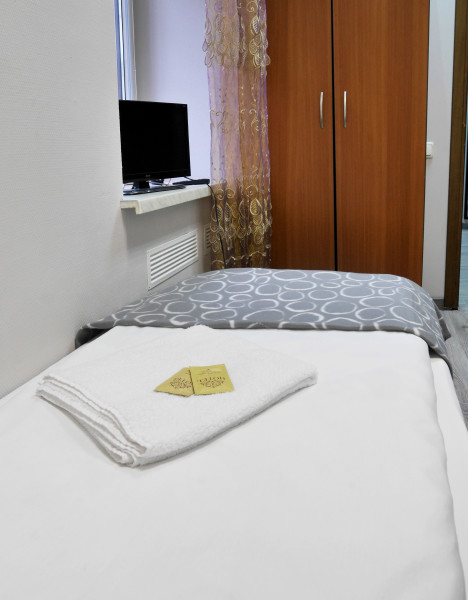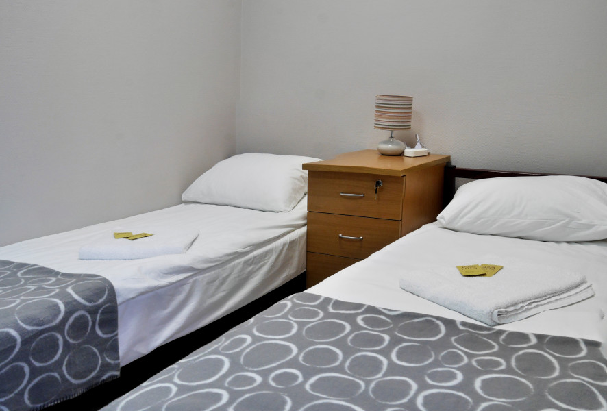Стандартный двухместный номер площадью 7 кв.м., возможно размещение на одной двуспальной или двух односпальных кроватях. Есть доступ к Wi-Fi. Номер звукоизолирован, оснащен централизованной системой вентиляции и кондиционирования. Общая ванная комната и санузел. Также для Гостей доступна оборудованная кухня и прачечная.